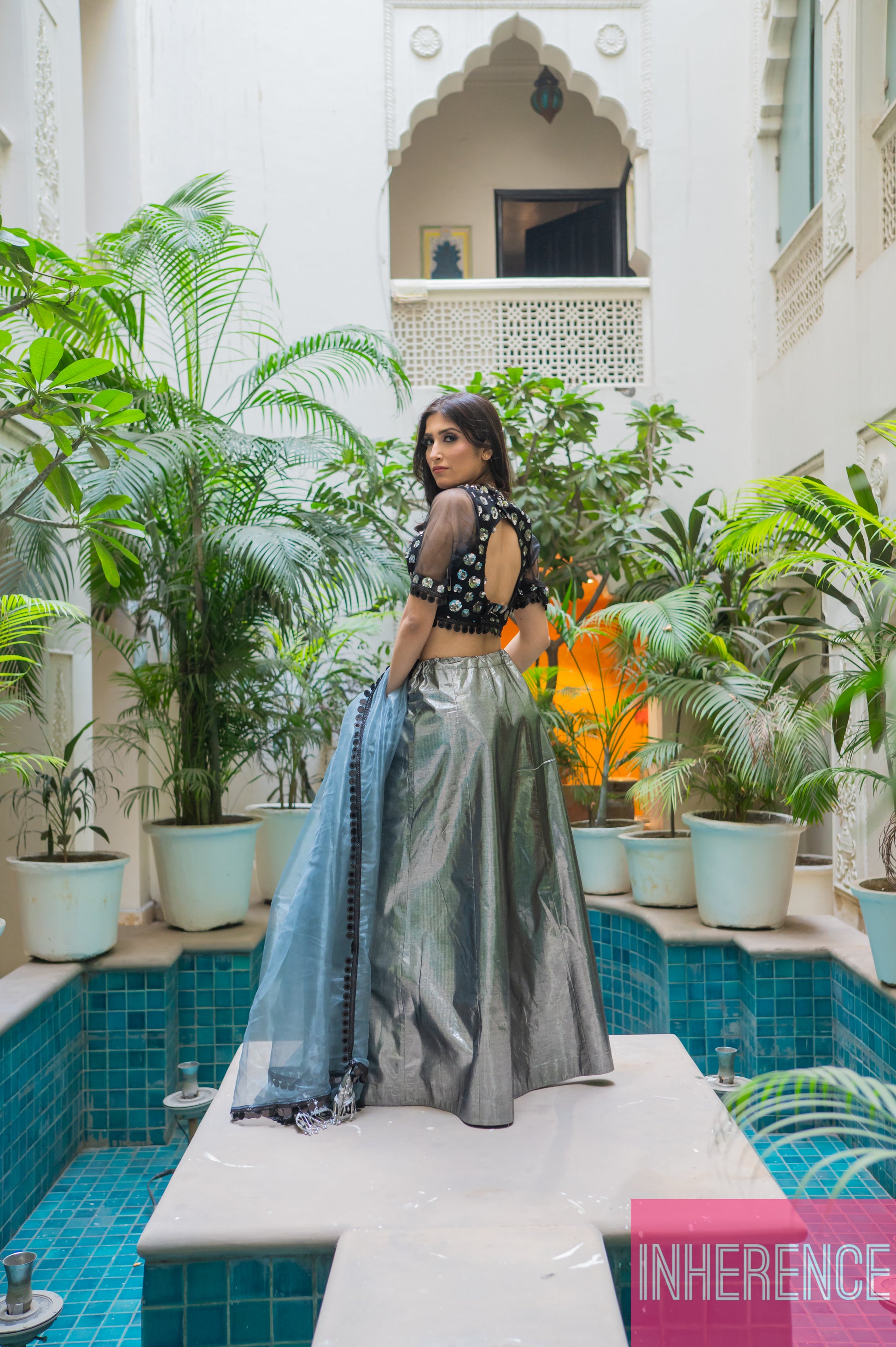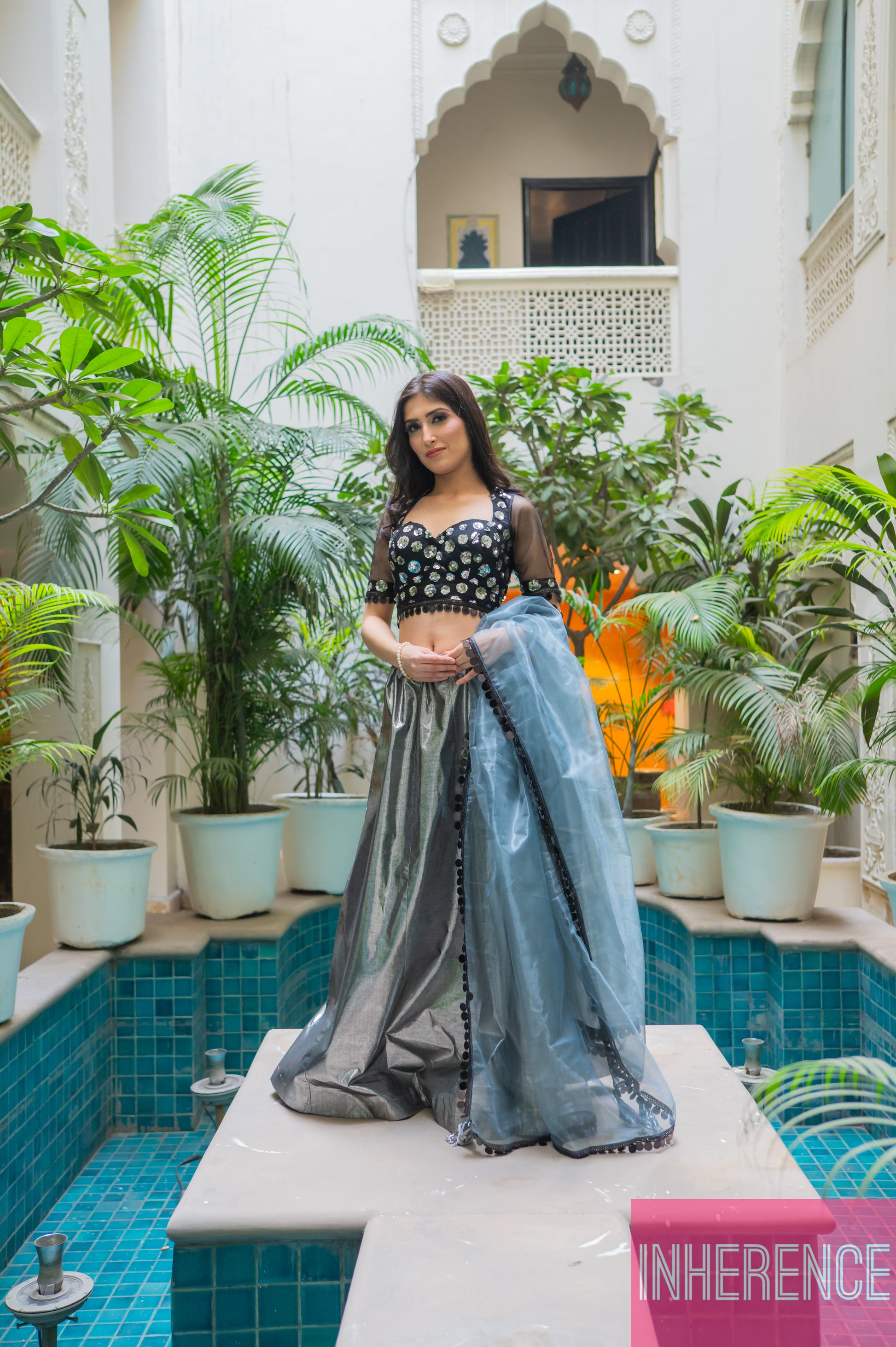 Black Shimmer Lehenga (full blouse)