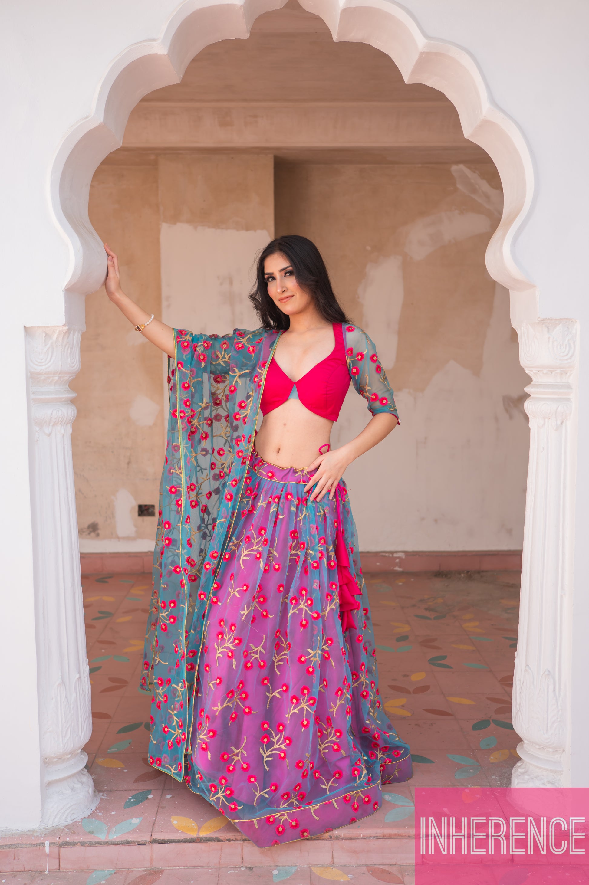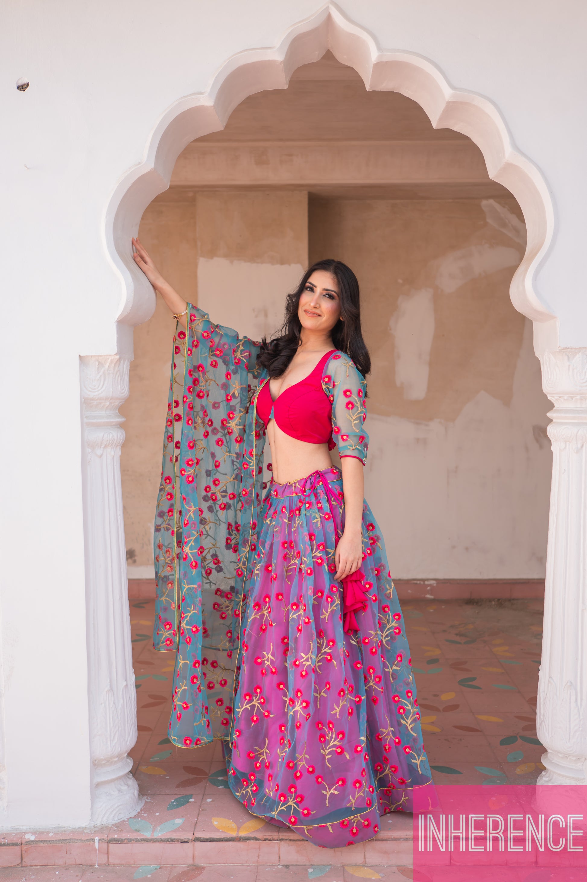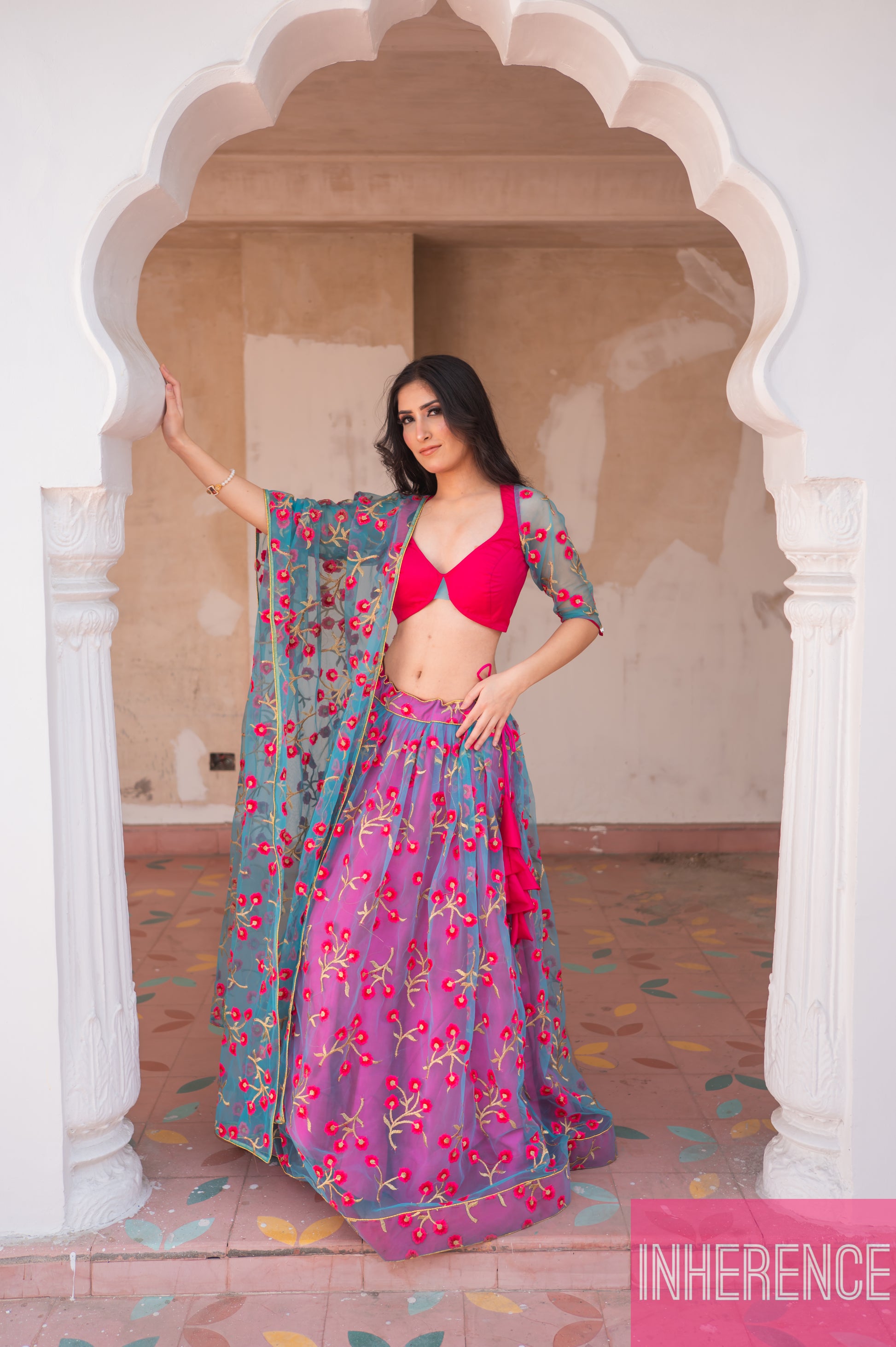 Blue Pink Contrast lehenga