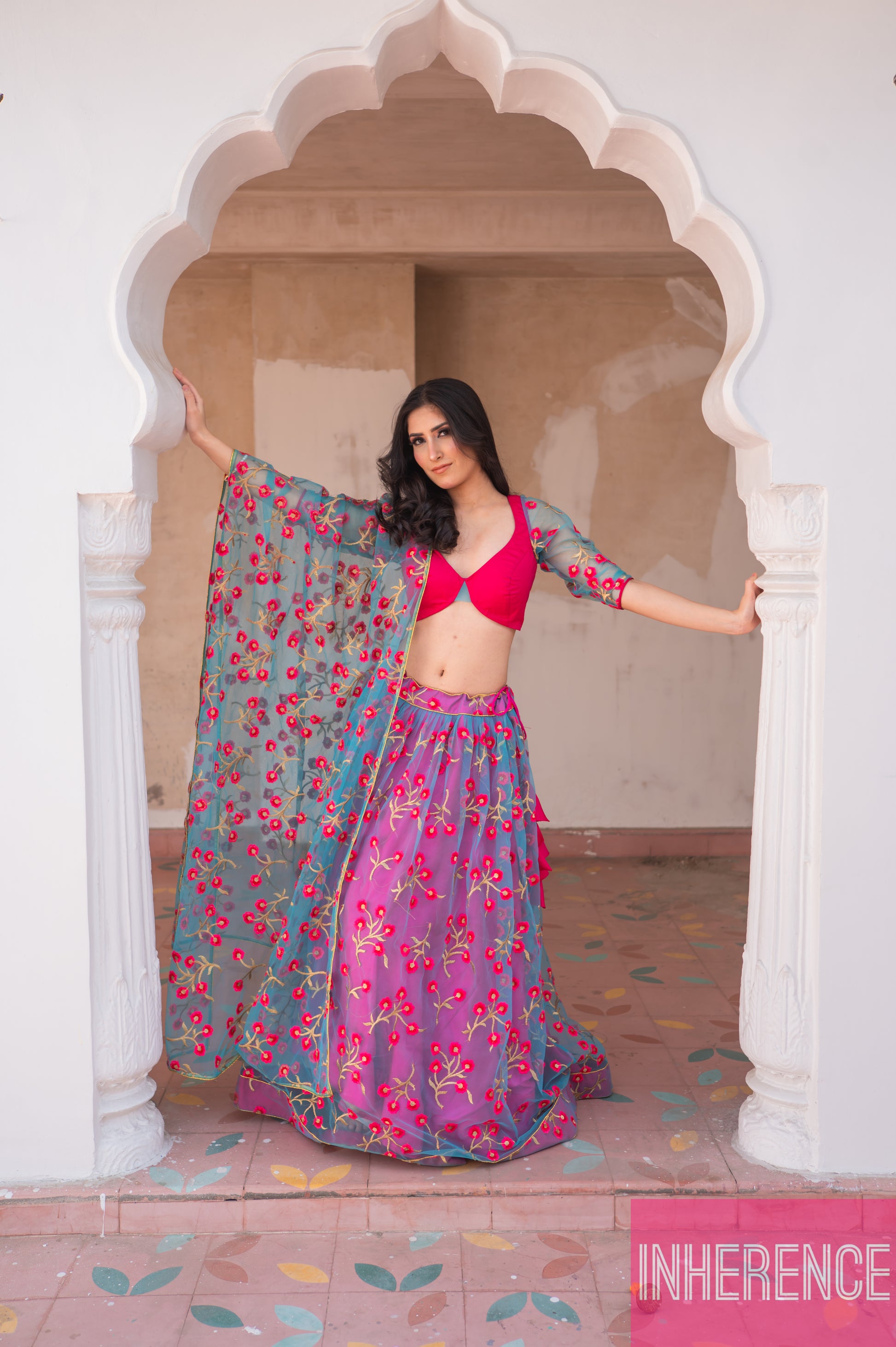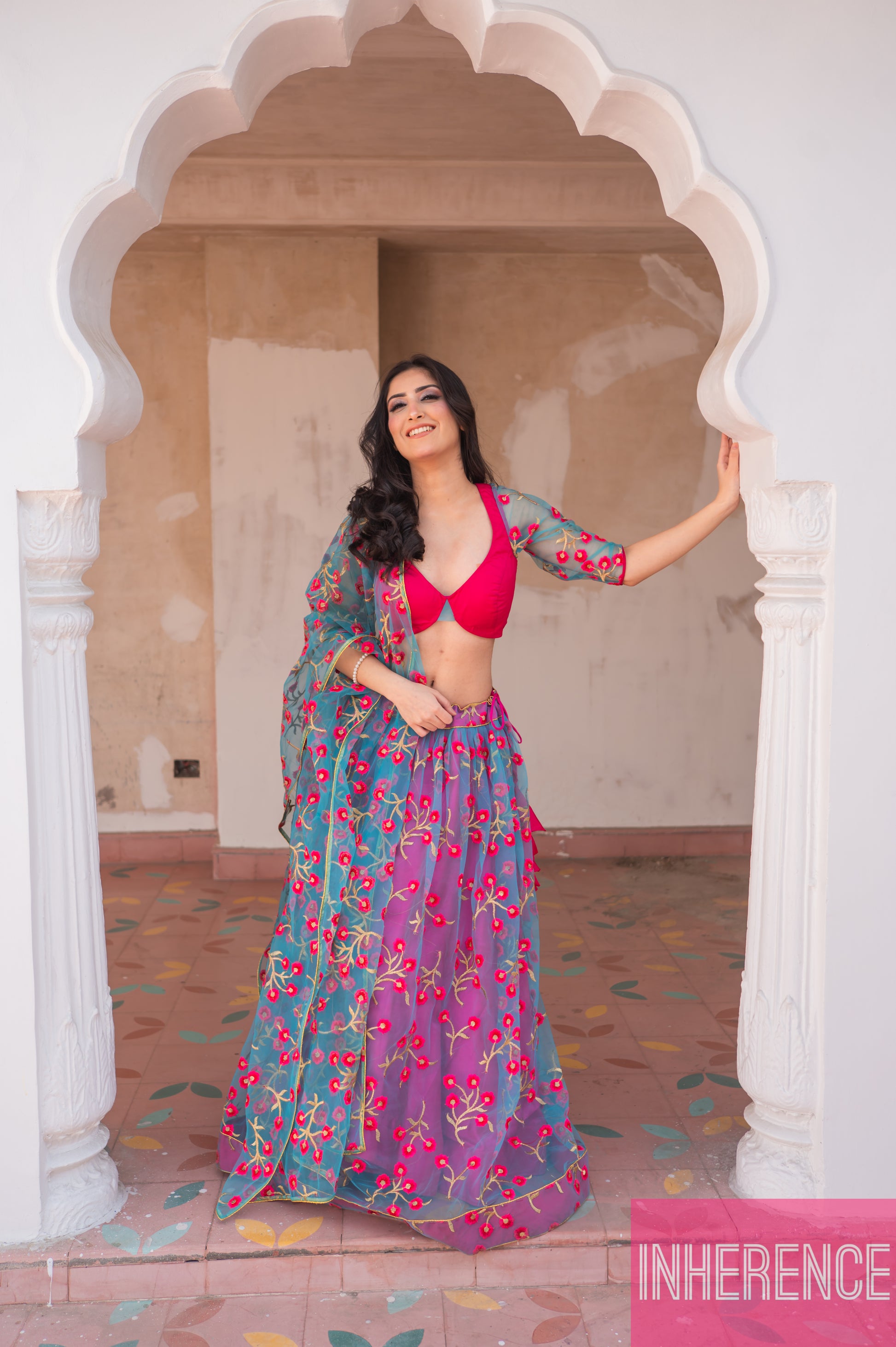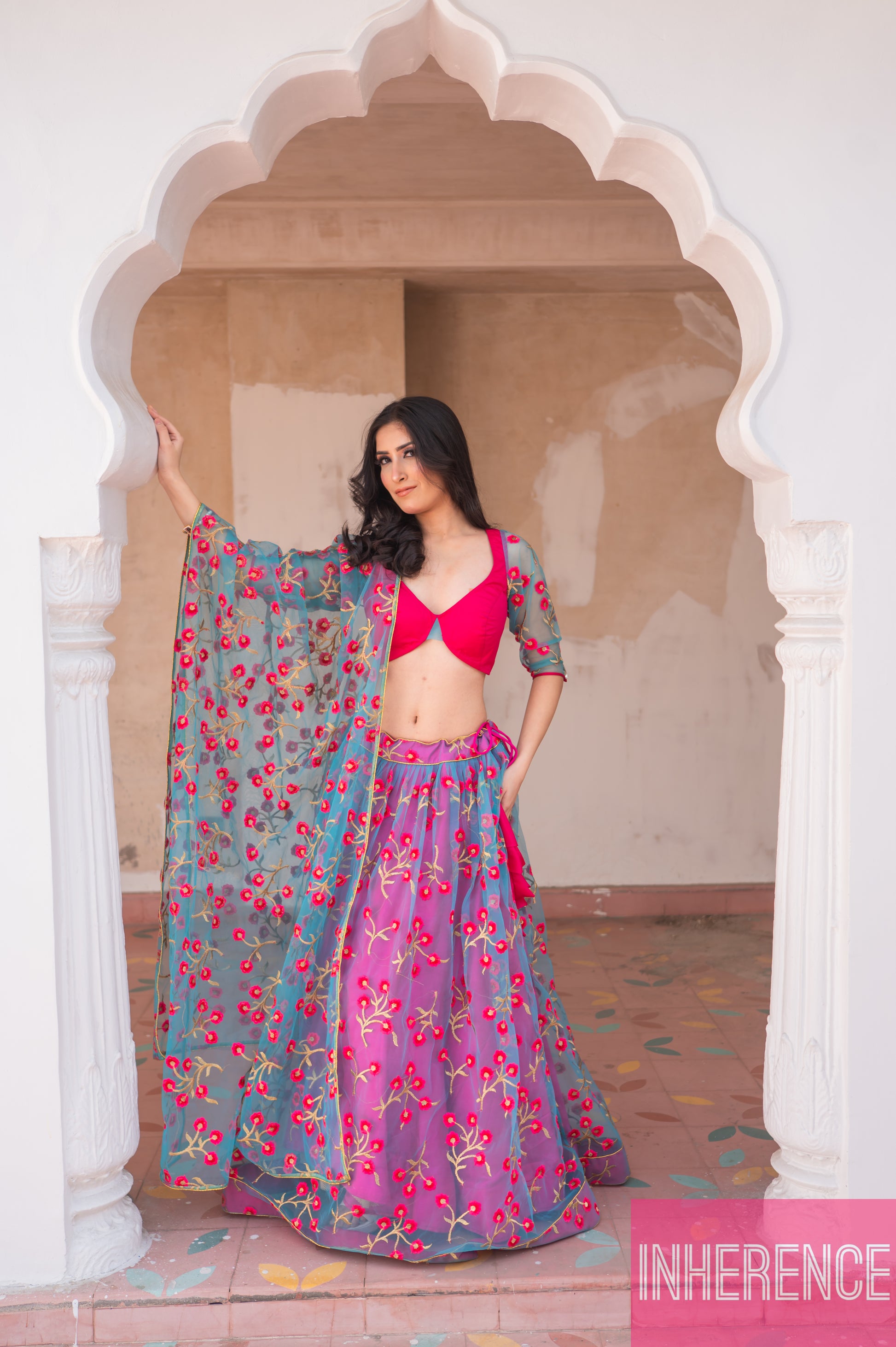 Blue Pink Contrast lehenga